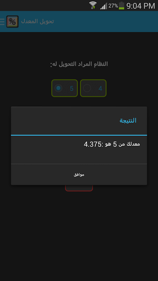 تطبيق " معدلي الجامعي " يوفر لك إمكانية حساب المعدل الفصلي والمعدل التراكمي لكل من نظامي المعدلات 4 و 5، كما يوفر إمكانية التحويل المباشر للمعدل من 4 إلى 5 او العكس.