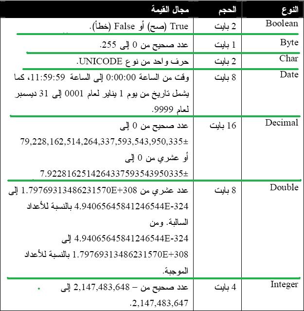 انواع المتغيرات التي يمكن التعامل معها نوضح كل