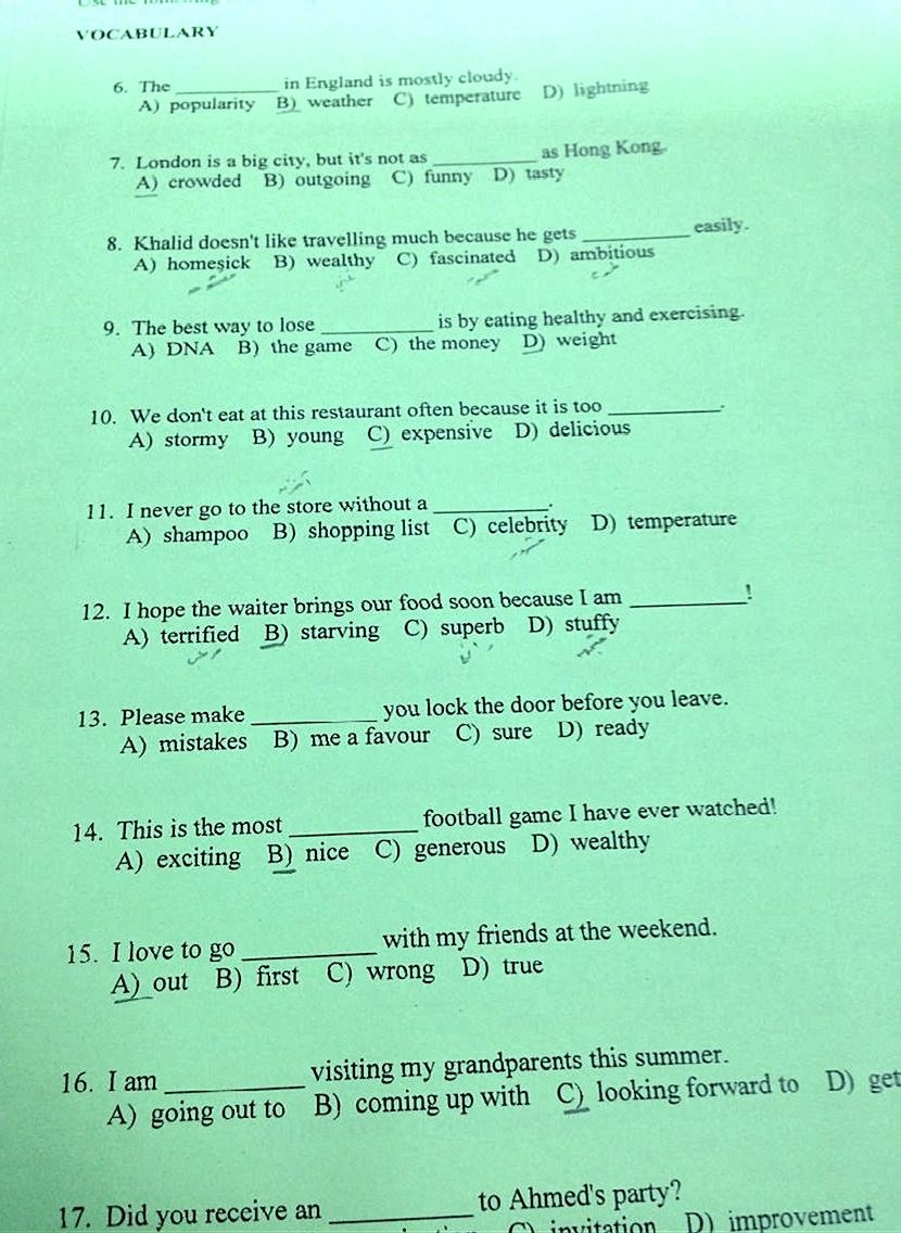 اسئلة الفوكابلري اختبار ELCA 101 ماكانت من المفردات كلها