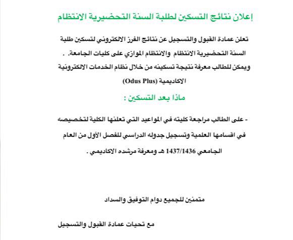 ومبرروك للي اتسكن في الكلية للي يبيها
