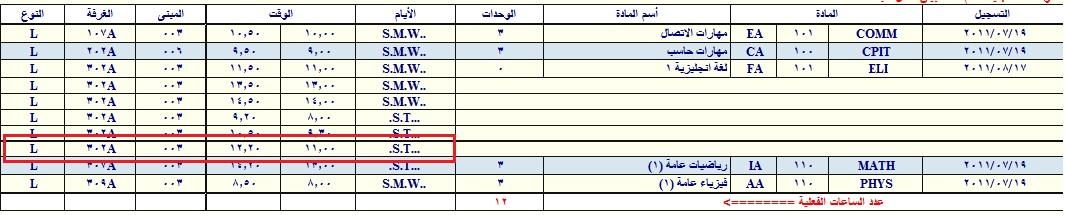 بس المشكله انه يوم الاحد زي مو محدده بالاحمر محطوط عندي من 11-12.20