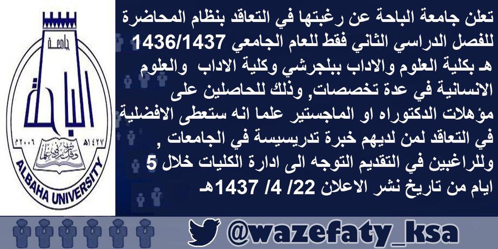 وظائف تعاون بجامعة الباحة فرع بلجرشي وينتهي التقديم يوم الأحد القادم