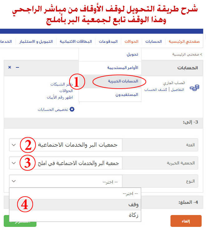 للتبرع في الحساب الخاص لوقف الأوقاف في بنك الراجحي (حساب رسمي باسم الجمعية وسيخرج لك الأسم على شاشة الصراف)